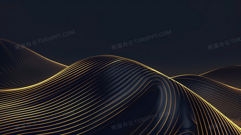 本作品内容为黑金曲线起伏山脉纹理背景, 格式为 jpg, 大小3 MB, 图片尺寸为2912 x 1632, 作品中背景图片无需修改, 源文件无水印,可以直接使用, 欢迎使用熊猫办公。 如认为平台内容涉嫌侵权,可通过邮件:tousu@tukuppt.com提出书面通知,我们将及时处理。