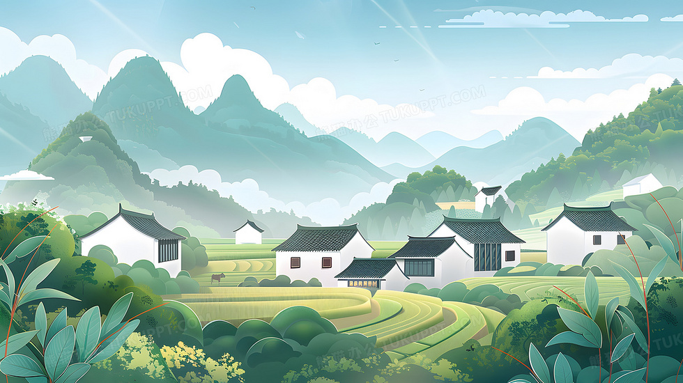 本作品内容为中国风农村山村田野清新插画, 格式为 jpg, 大小8 MB, 图片尺寸为5824 x 3264, 源文件无水印, 欢迎使用熊猫办公。 如认为平台内容涉嫌侵权,可通过邮件:tousu@tukuppt.com提出书面通知,我们将及时处理。