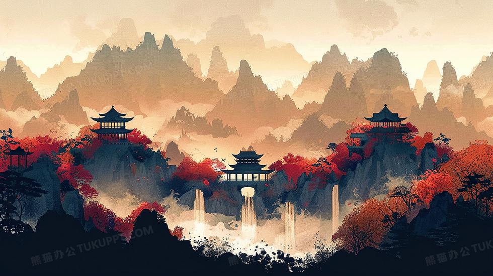 本作品内容为中国风水墨山水画插画, 格式为 jpg, 大小4 MB, 图片尺寸为2912 x 1632, 源文件无水印, 欢迎使用熊猫办公。 如认为平台内容涉嫌侵权,可通过邮件:tousu@tukuppt.com提出书面通知,我们将及时处理。