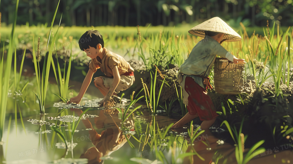 本作品内容为稻田里玩泥巴的孩子插画, 格式为 jpg, 大小3 MB, 图片尺寸为2912 x 1632, 源文件无水印, 欢迎使用熊猫办公。 如认为平台内容涉嫌侵权,可通过邮件:tousu@tukuppt.com提出书面通知,我们将及时处理。
