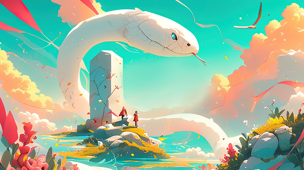 本作品内容为蛇年巨大的白蛇动漫风创意插画, 格式为 jpg, 大小5 MB, 图片尺寸为2912 x 1632, 源文件无水印, 欢迎使用熊猫办公。 如认为平台内容涉嫌侵权,可通过邮件:tousu@tukuppt.com提出书面通知,我们将及时处理。