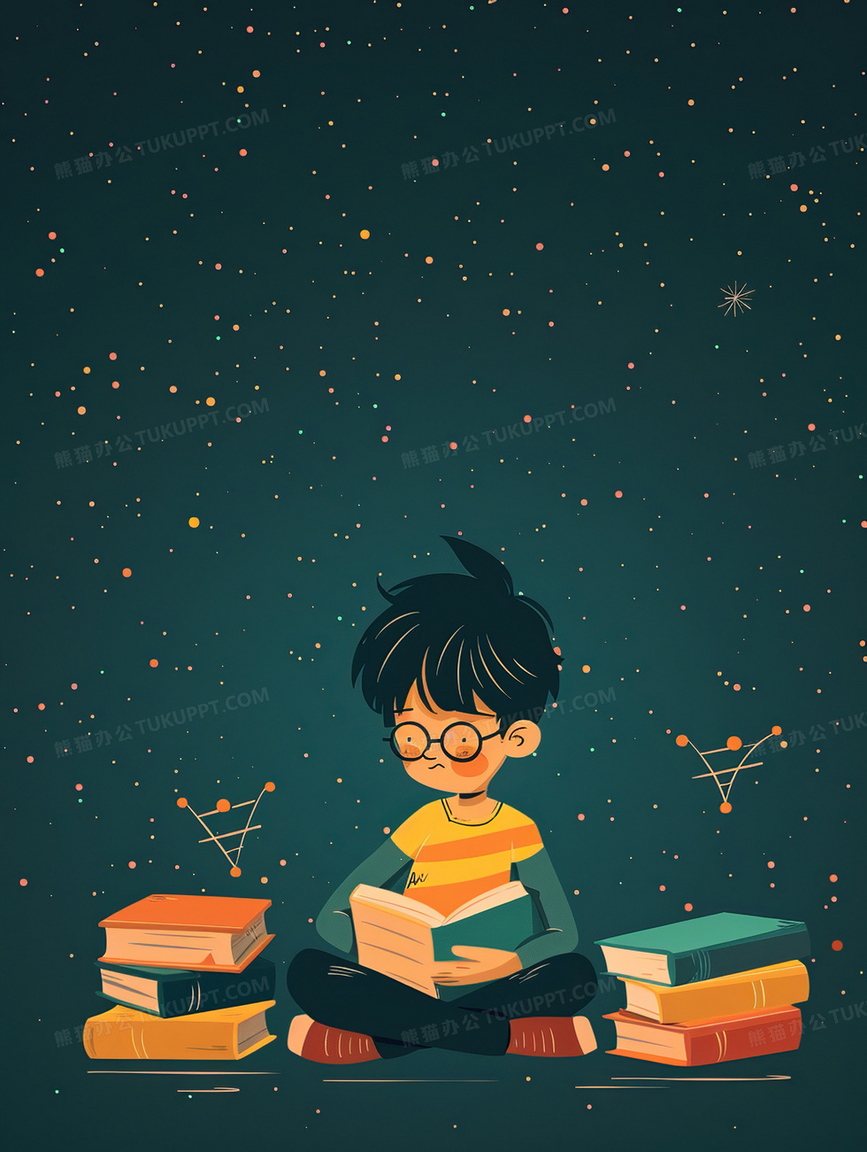 本作品内容为卡通人物学习教育背景, 格式为 jpg, 大小2 MB, 图片尺寸为1856 x 2464, 作品中背景图片无需修改, 源文件无水印,可以直接使用, 欢迎使用熊猫办公。 如认为平台内容涉嫌侵权,可通过邮件:tousu@tukuppt.com提出书面通知,我们将及时处理。