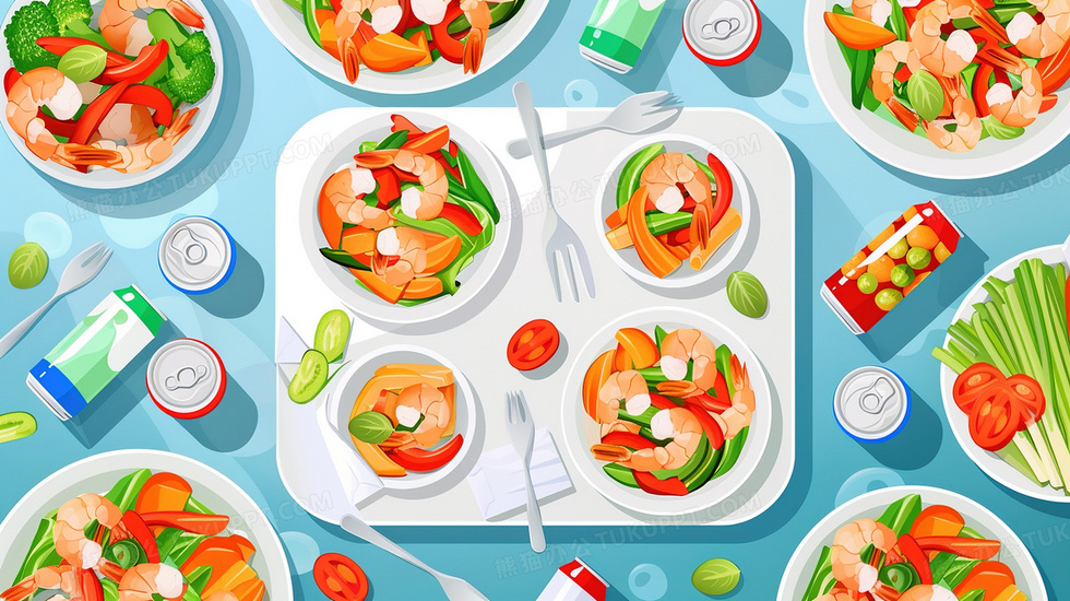 本作品内容为餐桌美食基围虾果蔬插画, 格式为 jpg, 大小3 MB, 图片尺寸为2912 x 1632, 源文件无水印, 欢迎使用熊猫办公。 如认为平台内容涉嫌侵权,可通过邮件:tousu@tukuppt.com提出书面通知,我们将及时处理。