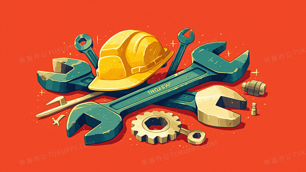 本作品内容为红色五一劳动节扳手工具卡通插画, 格式为 jpg, 大小3 MB, 图片尺寸为2912 x 1632, 源文件无水印, 欢迎使用熊猫办公。 如认为平台内容涉嫌侵权,可通过邮件:tousu@tukuppt.com提出书面通知,我们将及时处理。