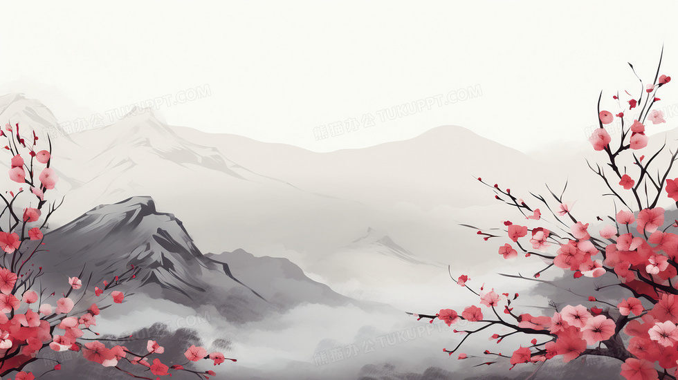 本作品内容为中国风水墨梅花花枝背景, 格式为 jpg, 大小2 MB, 图片尺寸为2912 x 1632, 作品中背景图片无需修改, 源文件无水印,可以直接使用, 欢迎使用熊猫办公。 如认为平台内容涉嫌侵权,可通过邮件:tousu@tukuppt.com提出书面通知,我们将及时处理。