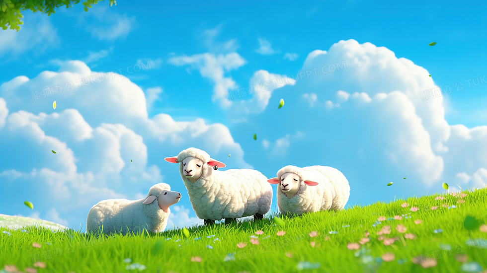本作品内容为唯美小清新蓝天白云下的绵羊插画, 格式为 jpg, 大小3 MB, 图片尺寸为2912 x 1632, 源文件无水印, 欢迎使用熊猫办公。 如认为平台内容涉嫌侵权,可通过邮件:tousu@tukuppt.com提出书面通知,我们将及时处理。