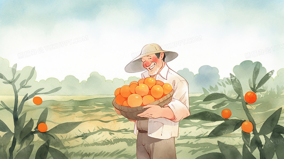 本作品内容为秋天农民伯伯抱着丰收的橙子插画, 格式为 jpg, 大小4 MB, 图片尺寸为2912 x 1632, 源文件无水印, 欢迎使用熊猫办公。 如认为平台内容涉嫌侵权,可通过邮件:tousu@tukuppt.com提出书面通知,我们将及时处理。