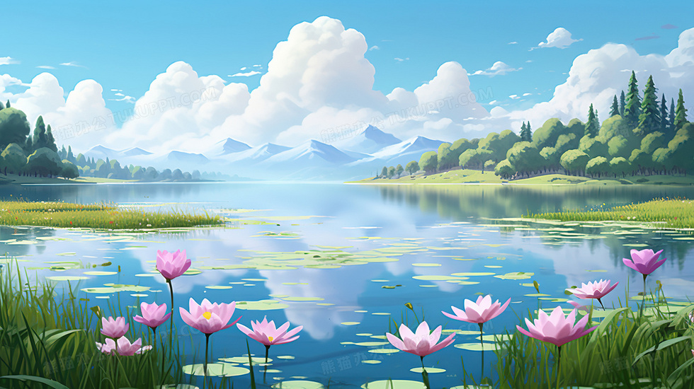 本作品内容为春天湖泊里绽放的睡莲风景插画, 格式为 jpg, 大小3 MB, 图片尺寸为2912 x 1632, 源文件无水印, 欢迎使用熊猫办公。 如认为平台内容涉嫌侵权,可通过邮件:tousu@tukuppt.com提出书面通知,我们将及时处理。