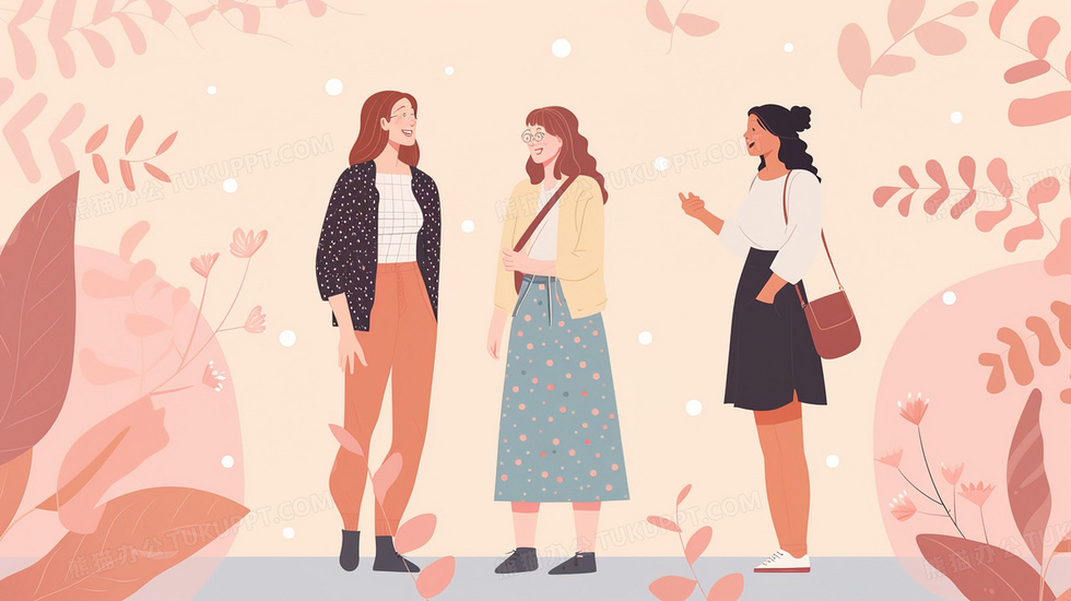 本作品内容为几个青春靓丽的女士在交谈插画, 格式为 jpg, 大小2 MB, 图片尺寸为2912 x 1632, 源文件无水印, 欢迎使用熊猫办公。 如认为平台内容涉嫌侵权,可通过邮件:tousu@tukuppt.com提出书面通知,我们将及时处理。