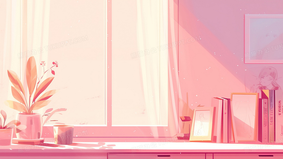 本作品内容为粉色调女生卧室室内设计插画, 格式为 jpg, 大小2 MB, 图片尺寸为2912 x 1632, 源文件无水印, 欢迎使用熊猫办公。 如认为平台内容涉嫌侵权,可通过邮件:tousu@tukuppt.com提出书面通知,我们将及时处理。