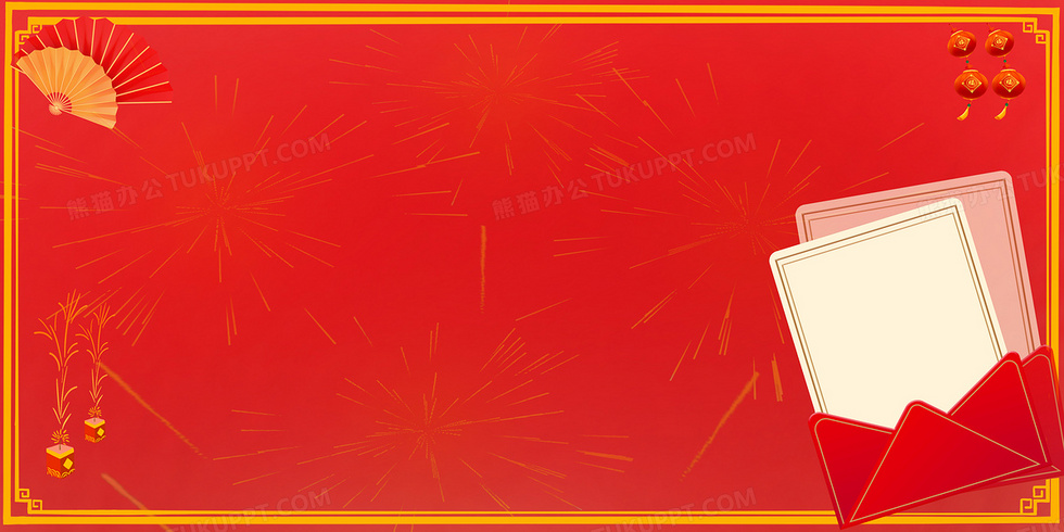 本作品内容为新年喜庆信封背景, 格式为 psd, 大小15 MB, 图片尺寸为4724 x 2362, 作品中背景图片无需修改, 源文件无水印,可以直接使用, 欢迎使用熊猫办公。 如认为平台内容涉嫌侵权,可通过邮件:tousu@tukuppt.com提出书面通知,我们将及时处理。