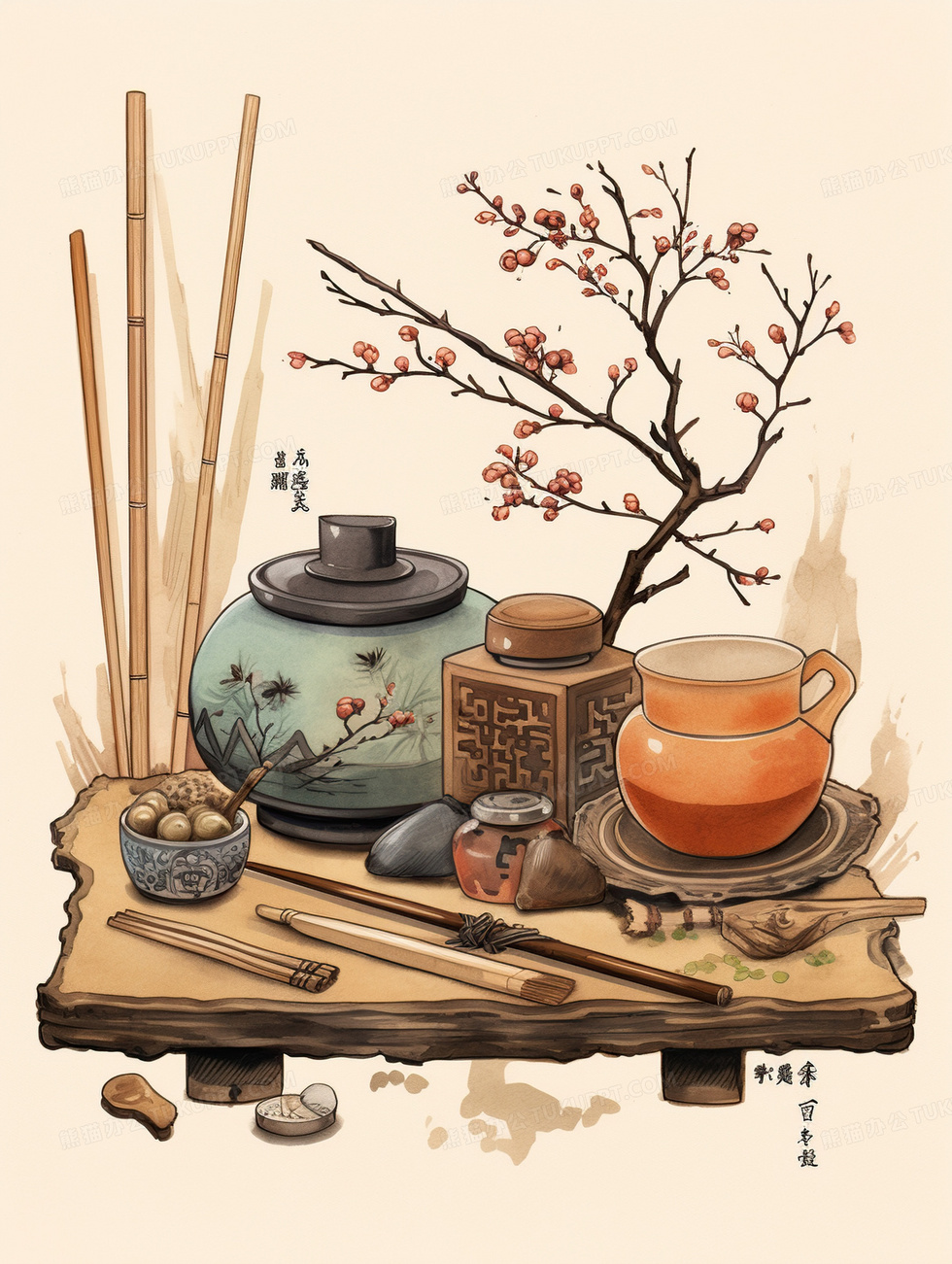 本作品内容为中国风中草药植物中医药罐插画, 格式为 jpg, 大小3 MB, 图片尺寸为1856 x 2464, 源文件无水印, 欢迎使用熊猫办公。 如认为平台内容涉嫌侵权,可通过邮件:tousu@tukuppt.com提出书面通知,我们将及时处理。