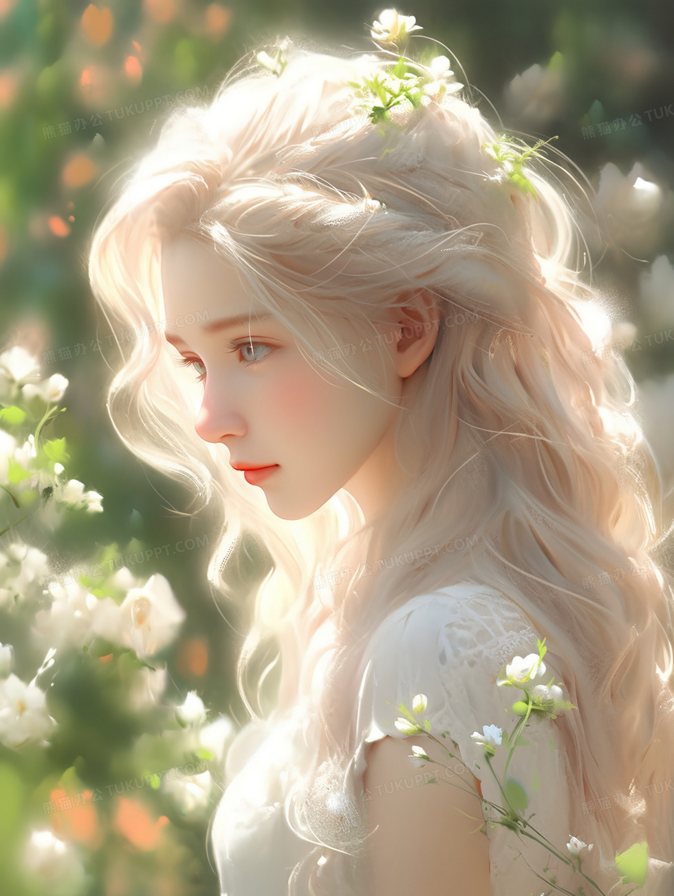 本作品内容为花朵中的银发女孩唯美插画, 格式为 jpg, 大小2 MB, 图片尺寸为1856 x 2464, 源文件无水印, 欢迎使用熊猫办公。 如认为平台内容涉嫌侵权,可通过邮件:tousu@tukuppt.com提出书面通知,我们将及时处理。