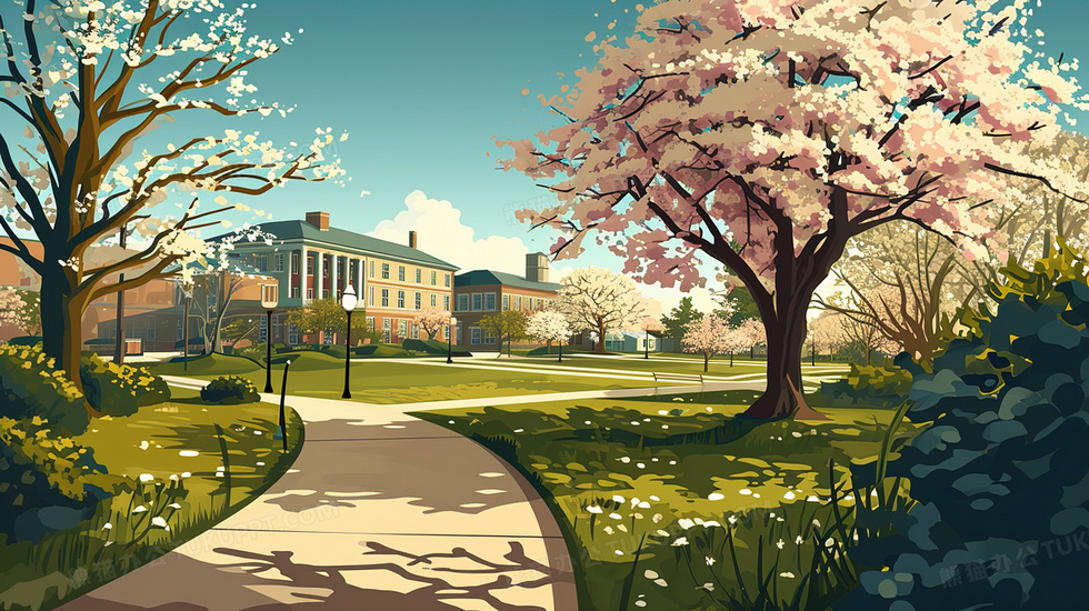 本作品内容为春季鲜花盛开的校园小道插画, 格式为 jpg, 大小3 MB, 图片尺寸为2912 x 1632, 源文件无水印, 欢迎使用熊猫办公。 如认为平台内容涉嫌侵权,可通过邮件:tousu@tukuppt.com提出书面通知,我们将及时处理。