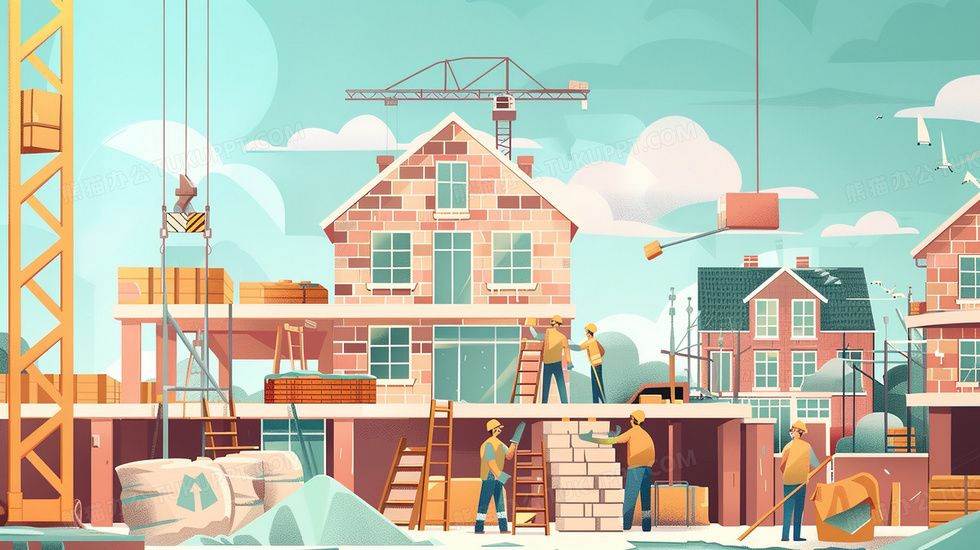 本作品内容为施工盖房子的建筑工人插画, 格式为 jpg, 大小3 MB, 图片尺寸为2912 x 1632, 源文件无水印, 欢迎使用熊猫办公。 如认为平台内容涉嫌侵权,可通过邮件:tousu@tukuppt.com提出书面通知,我们将及时处理。
