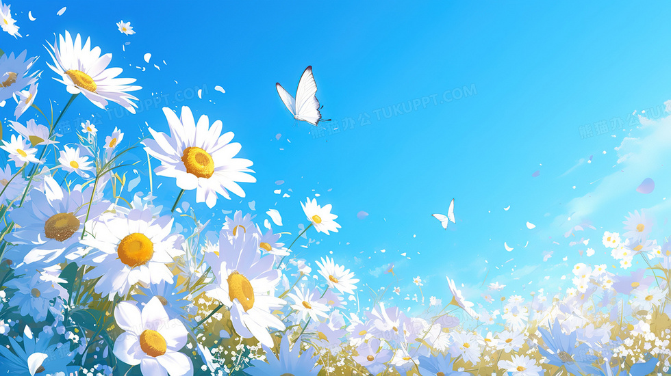 本作品内容为蓝天白云梦幻小雏菊花海唯美背景图, 格式为 jpg, 大小3 MB, 图片尺寸为2912 x 1632, 作品中背景图片无需修改, 源文件无水印,可以直接使用, 欢迎使用熊猫办公。 如认为平台内容涉嫌侵权,可通过邮件:tousu@tukuppt.com提出书面通知,我们将及时处理。