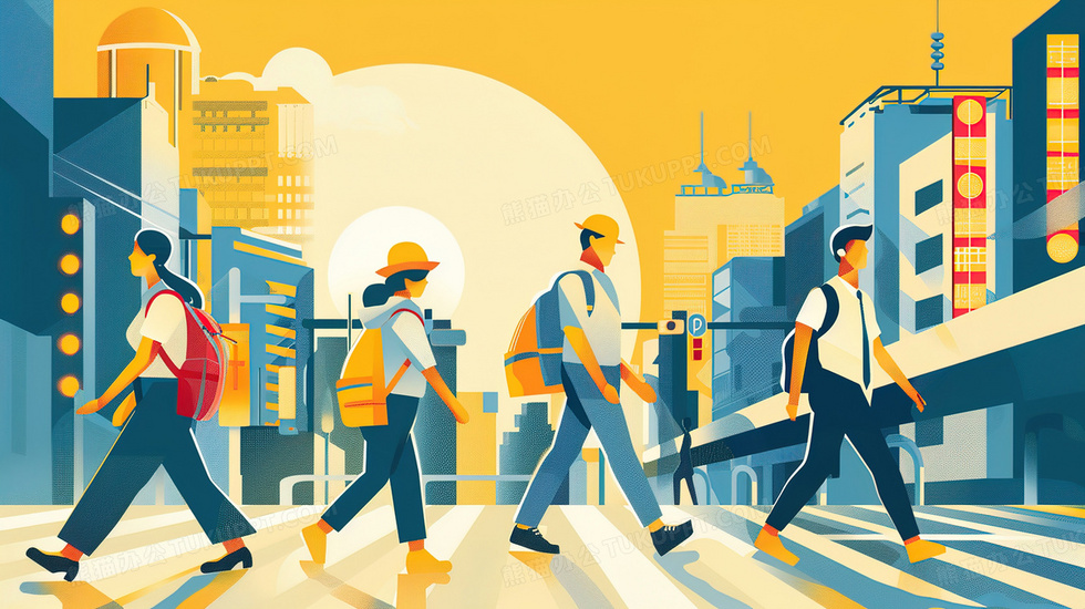 本作品内容为走在斑马线上的上班族插画, 格式为 jpg, 大小3 MB, 图片尺寸为2912 x 1632, 源文件无水印, 欢迎使用熊猫办公。 如认为平台内容涉嫌侵权,可通过邮件:tousu@tukuppt.com提出书面通知,我们将及时处理。