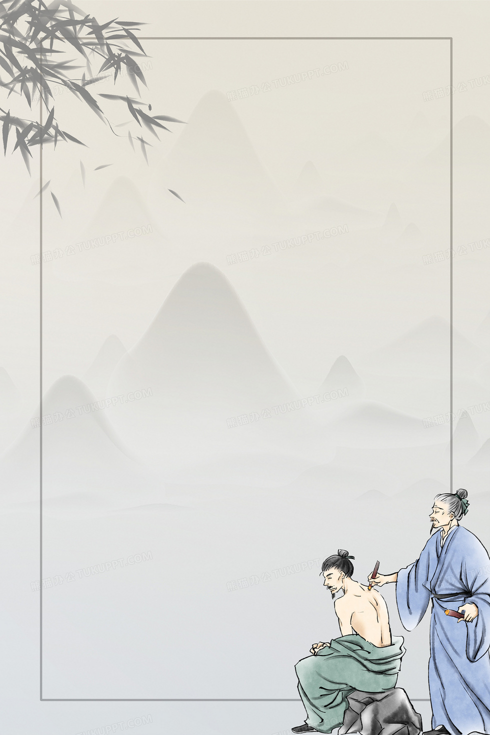 本作品内容为水墨风艾灸合成背景, 格式为 psd, 大小58 MB, 图片尺寸为3543 x 5315, 作品中背景图片无需修改, 源文件无水印,可以直接使用, 欢迎使用熊猫办公。 如认为平台内容涉嫌侵权,可通过邮件:tousu@tukuppt.com提出书面通知,我们将及时处理。