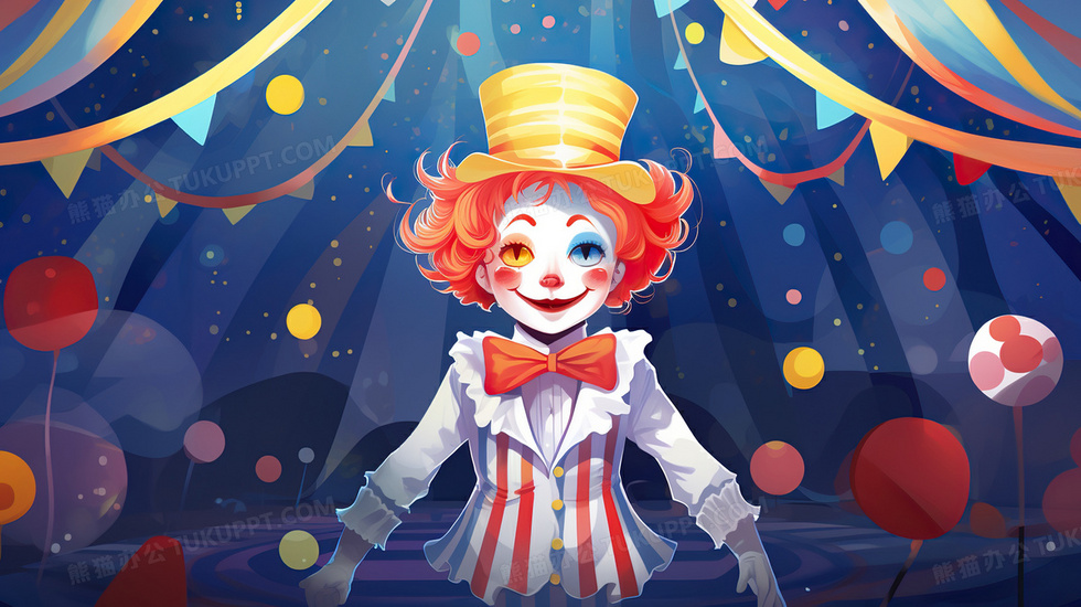 本作品内容为愚人节卡通小丑马戏团杂耍插画, 格式为 jpg, 大小3 MB, 图片尺寸为2912 x 1632, 源文件无水印, 欢迎使用熊猫办公。 如认为平台内容涉嫌侵权,可通过邮件:tousu@tukuppt.com提出书面通知,我们将及时处理。
