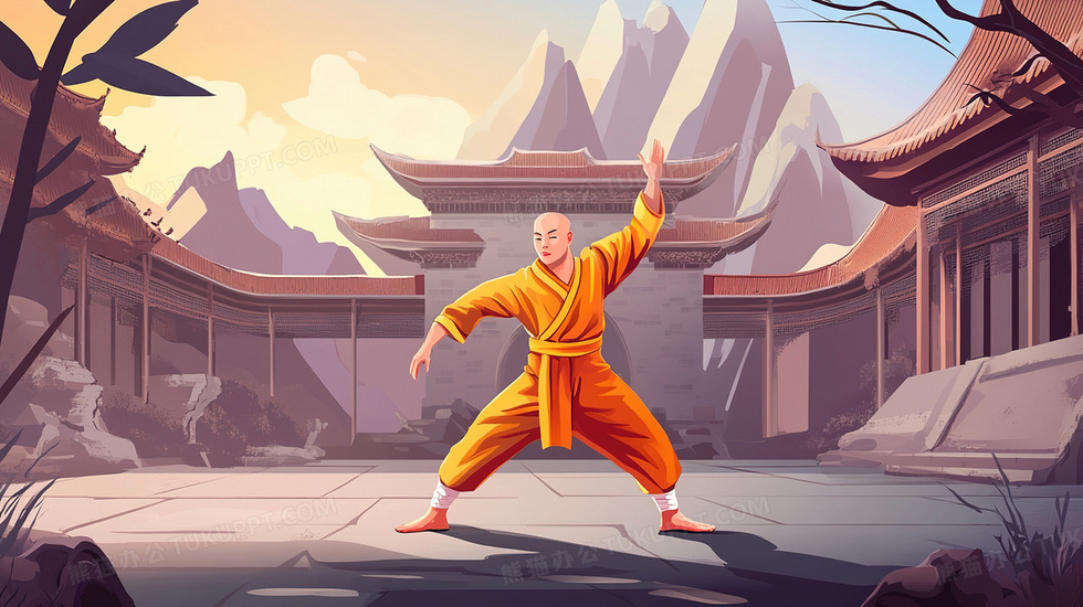 本作品内容为古代少林寺男子练习中国功夫插画, 格式为 jpg, 大小3 MB, 图片尺寸为2912 x 1632, 源文件无水印, 欢迎使用熊猫办公。 如认为平台内容涉嫌侵权,可通过邮件:tousu@tukuppt.com提出书面通知,我们将及时处理。