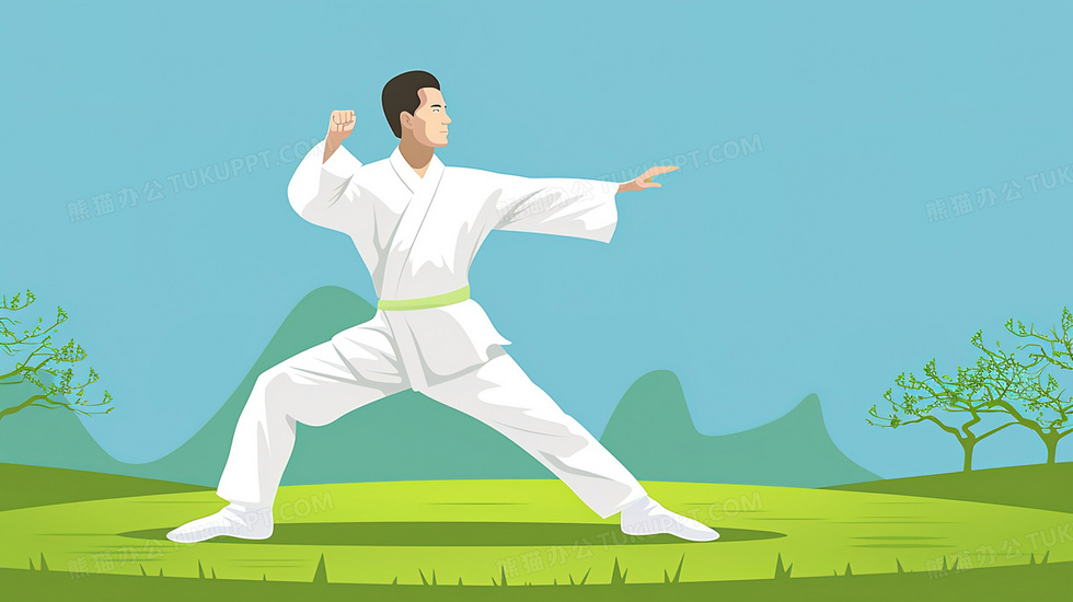 本作品内容为手绘卡通风格打太极的背景, 格式为 jpg, 大小2 MB, 图片尺寸为2912 x 1632, 作品中背景图片无需修改, 源文件无水印,可以直接使用, 欢迎使用熊猫办公。 如认为平台内容涉嫌侵权,可通过邮件:tousu@tukuppt.com提出书面通知,我们将及时处理。