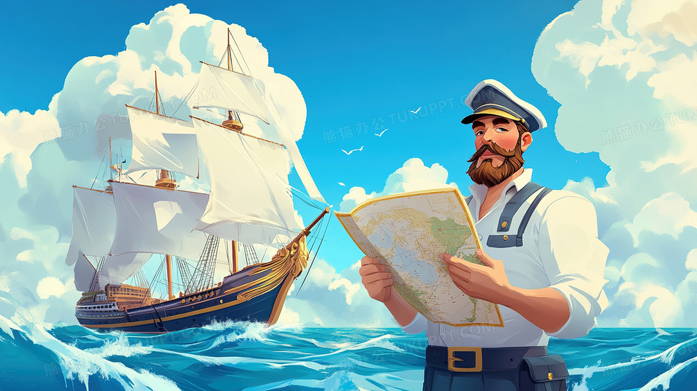 本作品内容为船长手拿地图插画, 格式为 jpg, 大小3 MB, 图片尺寸为2912 x 1632, 源文件无水印, 欢迎使用熊猫办公。 如认为平台内容涉嫌侵权,可通过邮件:tousu@tukuppt.com提出书面通知,我们将及时处理。