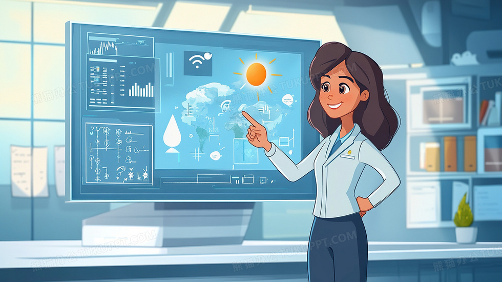 本作品内容为气象主播在播报天气插画, 格式为 jpg, 大小3 MB, 图片尺寸为2912 x 1632, 源文件无水印, 欢迎使用熊猫办公。 如认为平台内容涉嫌侵权,可通过邮件:tousu@tukuppt.com提出书面通知,我们将及时处理。