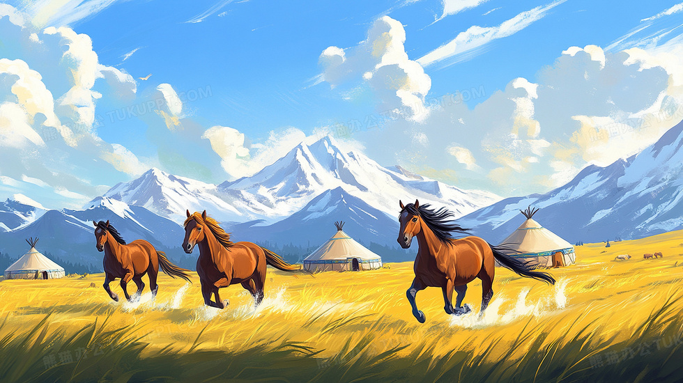 本作品内容为大自然风景草原奔驰的骏马插画, 格式为 jpg, 大小4 MB, 图片尺寸为2912 x 1632, 源文件无水印, 欢迎使用熊猫办公。 如认为平台内容涉嫌侵权,可通过邮件:tousu@tukuppt.com提出书面通知,我们将及时处理。