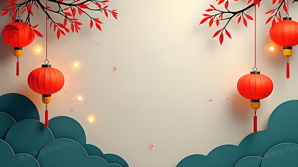本作品内容为现代极简风红黄剪纸灯笼点缀中式背景, 格式为 jpg, 大小2 MB, 图片尺寸为2912 x 1638, 作品中背景图片无需修改, 源文件无水印,可以直接使用, 欢迎使用熊猫办公。 如认为平台内容涉嫌侵权,可通过邮件:tousu@tukuppt.com提出书面通知,我们将及时处理。