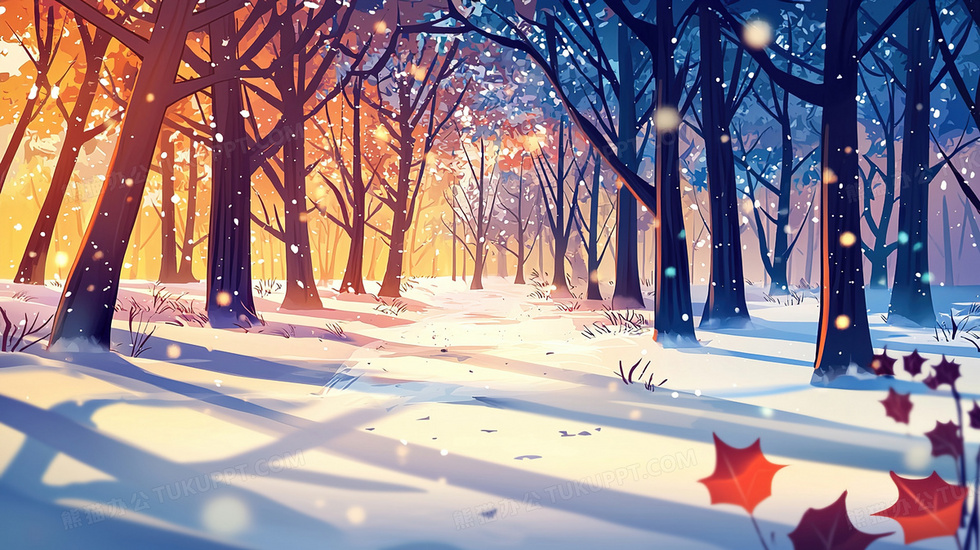 本作品内容为冬季阳光照射森林树木插画, 格式为 jpg, 大小3 MB, 图片尺寸为2912 x 1632, 源文件无水印, 欢迎使用熊猫办公。 如认为平台内容涉嫌侵权,可通过邮件:tousu@tukuppt.com提出书面通知,我们将及时处理。