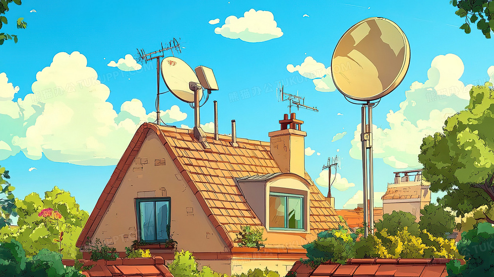 本作品内容为蓝天白云房屋楼顶有线电视信号接收器插画, 格式为 jpg, 大小4 MB, 图片尺寸为2912 x 1632, 源文件无水印, 欢迎使用熊猫办公。 如认为平台内容涉嫌侵权,可通过邮件:tousu@tukuppt.com提出书面通知,我们将及时处理。