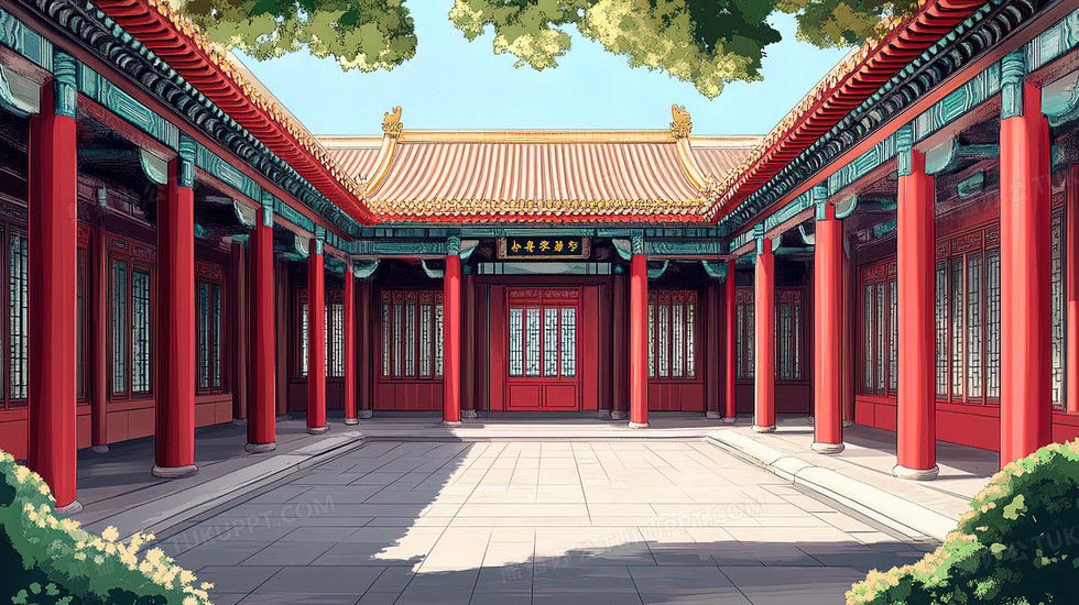 本作品内容为中国风中式庭院建筑景观插画, 格式为 jpg, 大小4 MB, 图片尺寸为2912 x 1632, 源文件无水印, 欢迎使用熊猫办公。 如认为平台内容涉嫌侵权,可通过邮件:tousu@tukuppt.com提出书面通知,我们将及时处理。