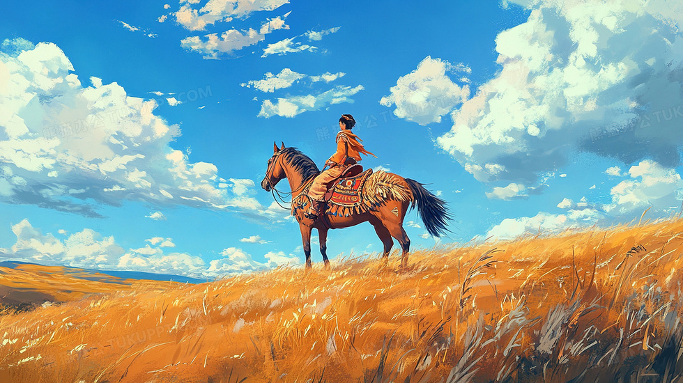 本作品内容为草原上骑马的人插画, 格式为 jpg, 大小4 MB, 图片尺寸为2912 x 1632, 源文件无水印, 欢迎使用熊猫办公。 如认为平台内容涉嫌侵权,可通过邮件:tousu@tukuppt.com提出书面通知,我们将及时处理。
