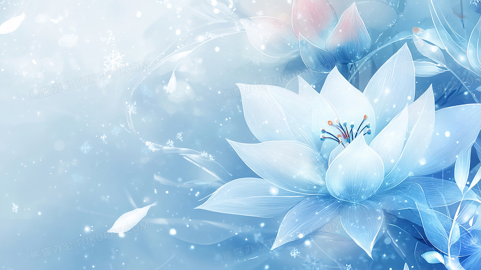 本作品内容为冬日唯美雪莲背景, 格式为 jpg, 大小7 MB, 图片尺寸为5824 x 3264, 作品中背景图片无需修改, 源文件无水印,可以直接使用, 欢迎使用熊猫办公。 如认为平台内容涉嫌侵权,可通过邮件:tousu@tukuppt.com提出书面通知,我们将及时处理。