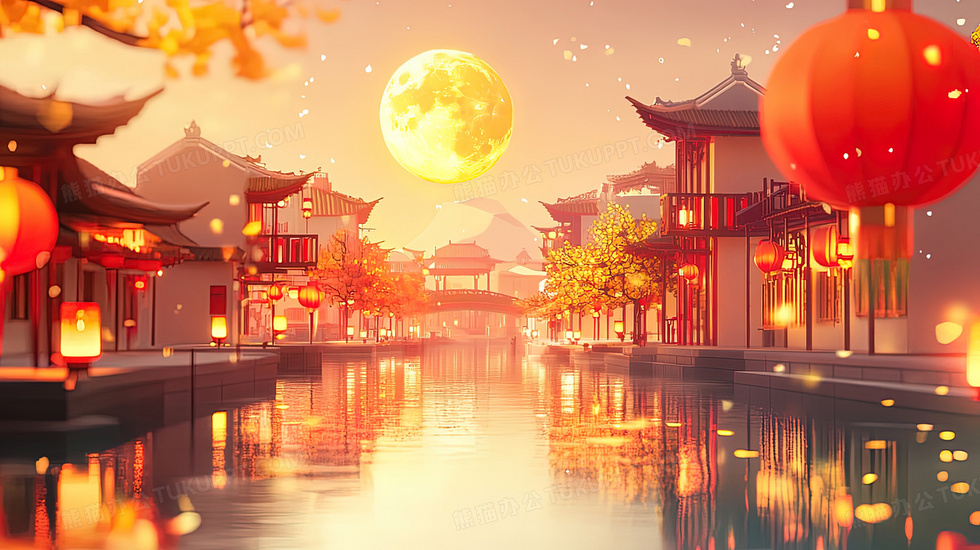 本作品内容为中秋圆月下的古建筑荷塘夜景插画, 格式为 jpg, 大小3 MB, 图片尺寸为2912 x 1632, 源文件无水印, 欢迎使用熊猫办公。 如认为平台内容涉嫌侵权,可通过邮件:tousu@tukuppt.com提出书面通知,我们将及时处理。