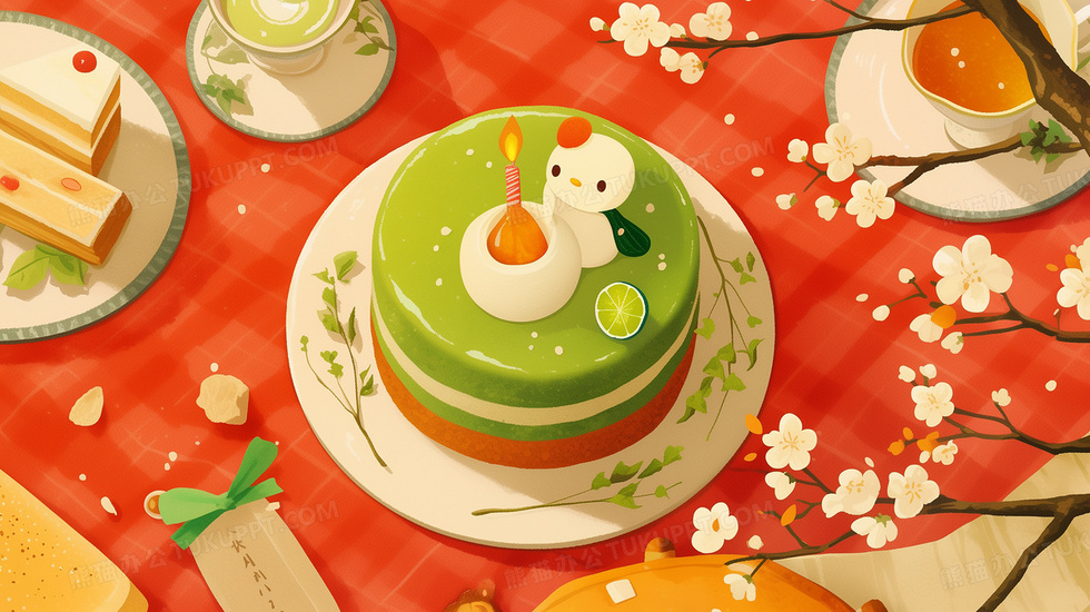 本作品内容为红色格子桌布上摆着一个三层抹茶味蛋糕插画, 格式为 jpg, 大小7 MB, 图片尺寸为2912 x 1632, 源文件无水印, 欢迎使用熊猫办公。 如认为平台内容涉嫌侵权,可通过邮件:tousu@tukuppt.com提出书面通知,我们将及时处理。