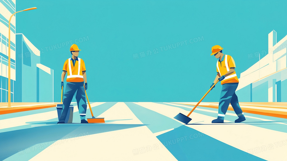 本作品内容为职业人物环卫工人背景, 格式为 jpg, 大小2 MB, 图片尺寸为2912 x 1632, 作品中背景图片无需修改, 源文件无水印,可以直接使用, 欢迎使用熊猫办公。 如认为平台内容涉嫌侵权,可通过邮件:tousu@tukuppt.com提出书面通知,我们将及时处理。