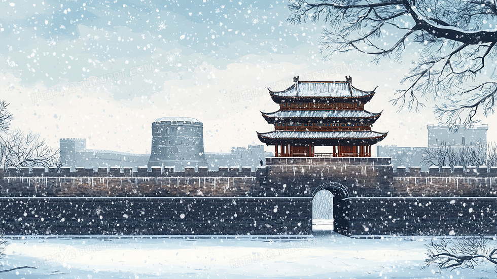 本作品内容为冬季古城墙下雪雪景插画, 格式为 jpg, 大小4 MB, 图片尺寸为2912 x 1632, 源文件无水印, 欢迎使用熊猫办公。 如认为平台内容涉嫌侵权,可通过邮件:tousu@tukuppt.com提出书面通知,我们将及时处理。