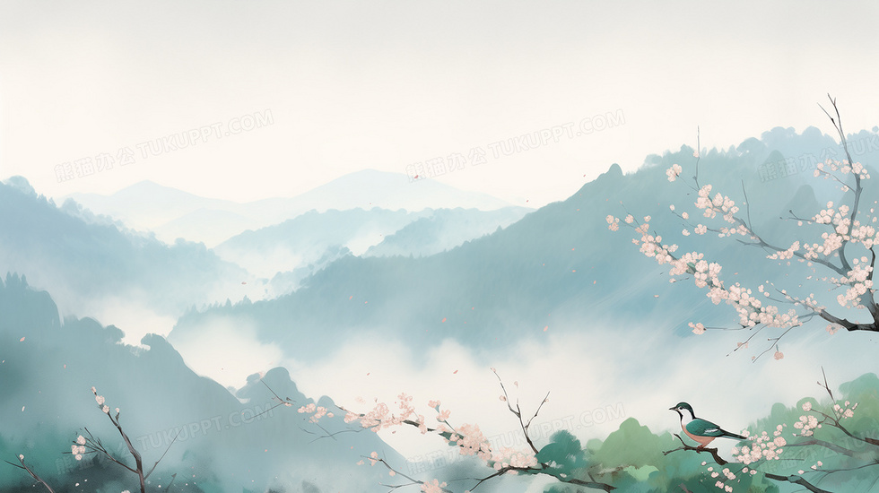 本作品内容为青山映衬下的小鸟和梅花国风插画, 格式为 jpg, 大小5 MB, 图片尺寸为2912 x 1632, 源文件无水印, 欢迎使用熊猫办公。 如认为平台内容涉嫌侵权,可通过邮件:tousu@tukuppt.com提出书面通知,我们将及时处理。