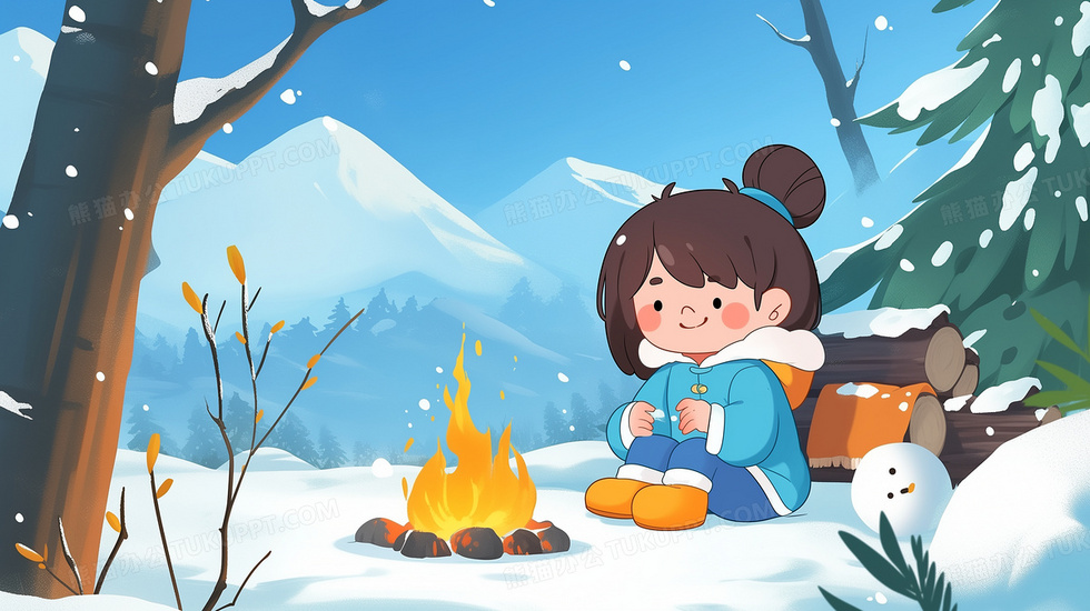 本作品内容为女孩坐在火堆旁边烤火插画, 格式为 jpg, 大小5 MB, 图片尺寸为2912 x 1632, 源文件无水印, 欢迎使用熊猫办公。 如认为平台内容涉嫌侵权,可通过邮件:tousu@tukuppt.com提出书面通知,我们将及时处理。