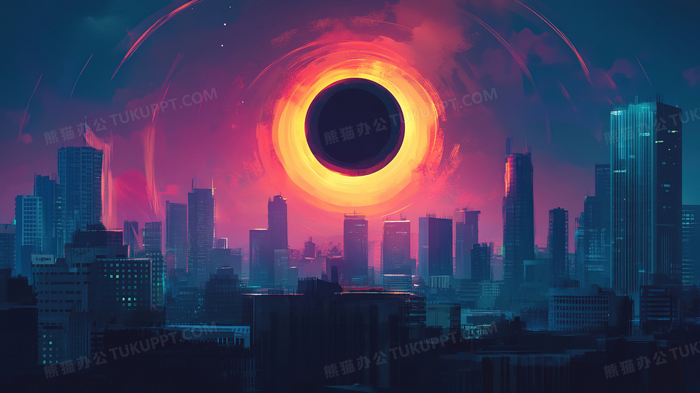 本作品内容为自然界自然现象城市高空日食插画, 格式为 jpg, 大小3 MB, 图片尺寸为2912 x 1632, 源文件无水印, 欢迎使用熊猫办公。 如认为平台内容涉嫌侵权,可通过邮件:tousu@tukuppt.com提出书面通知,我们将及时处理。