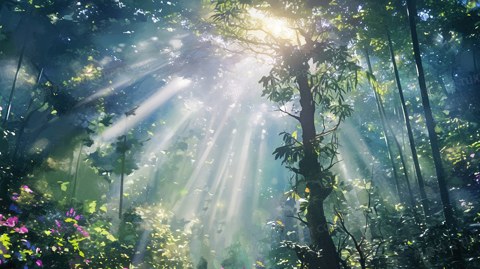 本作品内容为丁达尔效应大自然森林绿树景色插画, 格式为 jpg, 大小2 MB, 图片尺寸为2912 x 1632, 源文件无水印, 欢迎使用熊猫办公。 如认为平台内容涉嫌侵权,可通过邮件:tousu@tukuppt.com提出书面通知,我们将及时处理。