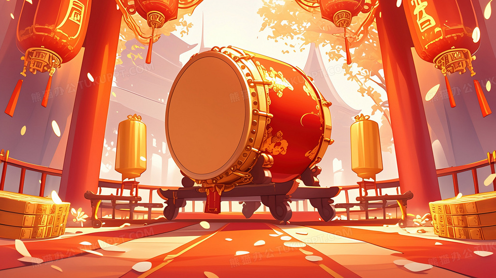 本作品内容为喜庆春节中国风中式圆形鼓插画, 格式为 jpg, 大小3 MB, 图片尺寸为2912 x 1632, 源文件无水印, 欢迎使用熊猫办公。 如认为平台内容涉嫌侵权,可通过邮件:tousu@tukuppt.com提出书面通知,我们将及时处理。