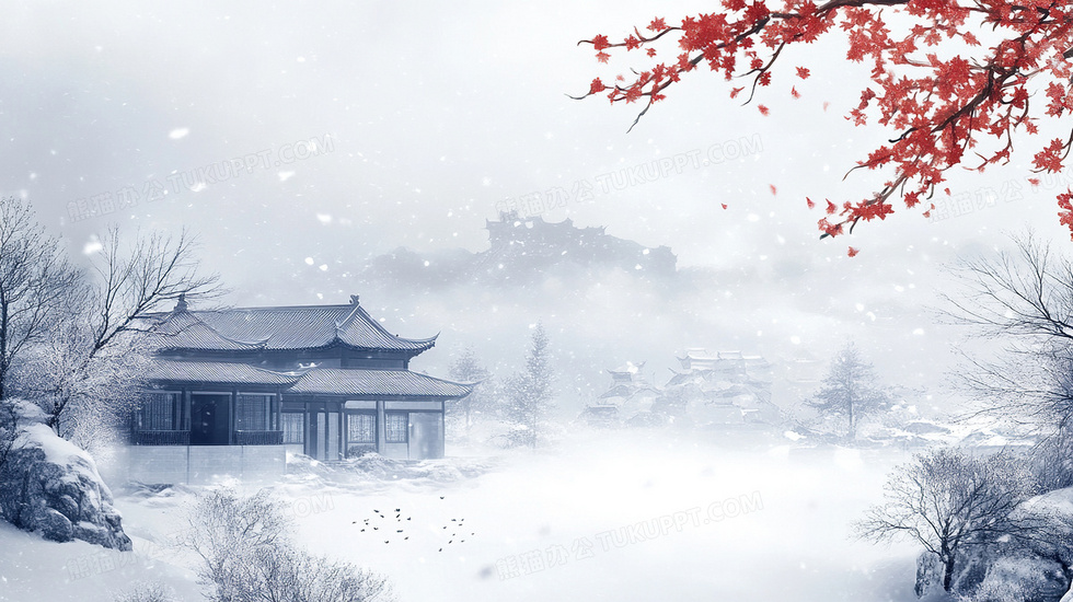 本作品内容为中国风梅花冬天雪地景色唯美背景, 格式为 jpg, 大小3 MB, 图片尺寸为2912 x 1632, 作品中背景图片无需修改, 源文件无水印,可以直接使用, 欢迎使用熊猫办公。 如认为平台内容涉嫌侵权,可通过邮件:tousu@tukuppt.com提出书面通知,我们将及时处理。
