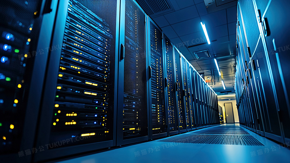 本作品内容为蓝色科技互联网网络服务器机房背景, 格式为 jpg, 大小3 MB, 图片尺寸为2912 x 1632, 作品中背景图片无需修改, 源文件无水印,可以直接使用, 欢迎使用熊猫办公。 如认为平台内容涉嫌侵权,可通过邮件:tousu@tukuppt.com提出书面通知,我们将及时处理。
