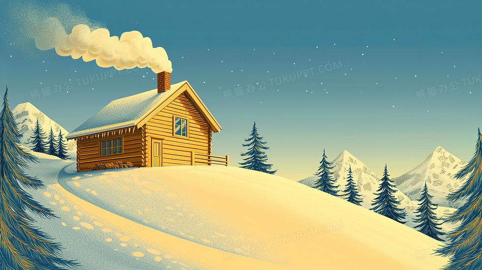 本作品内容为冬天山林雪地炊烟房屋创意背景, 格式为 jpg, 大小4 MB, 图片尺寸为2912 x 1632, 作品中背景图片无需修改, 源文件无水印,可以直接使用, 欢迎使用熊猫办公。 如认为平台内容涉嫌侵权,可通过邮件:tousu@tukuppt.com提出书面通知,我们将及时处理。
