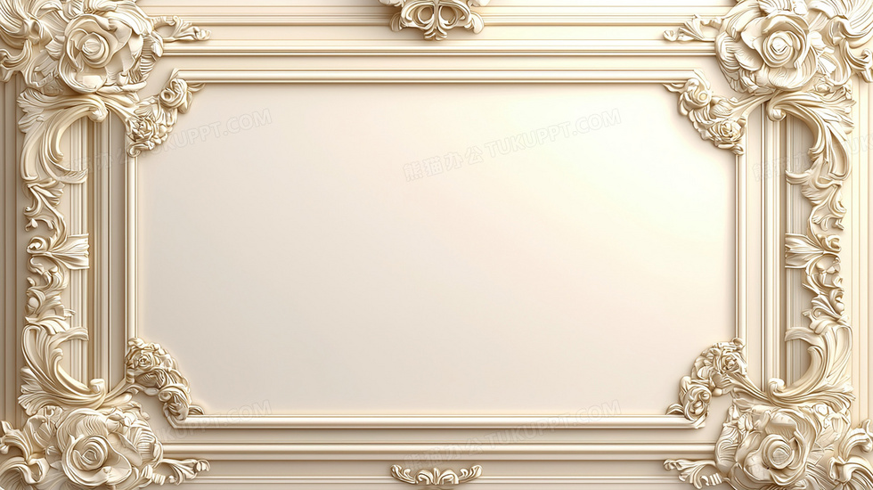 本作品内容为简约欧式浮雕花纹边框背景, 格式为 jpg, 大小2 MB, 图片尺寸为2912 x 1632, 作品中背景图片无需修改, 源文件无水印,可以直接使用, 欢迎使用熊猫办公。 如认为平台内容涉嫌侵权,可通过邮件:tousu@tukuppt.com提出书面通知,我们将及时处理。