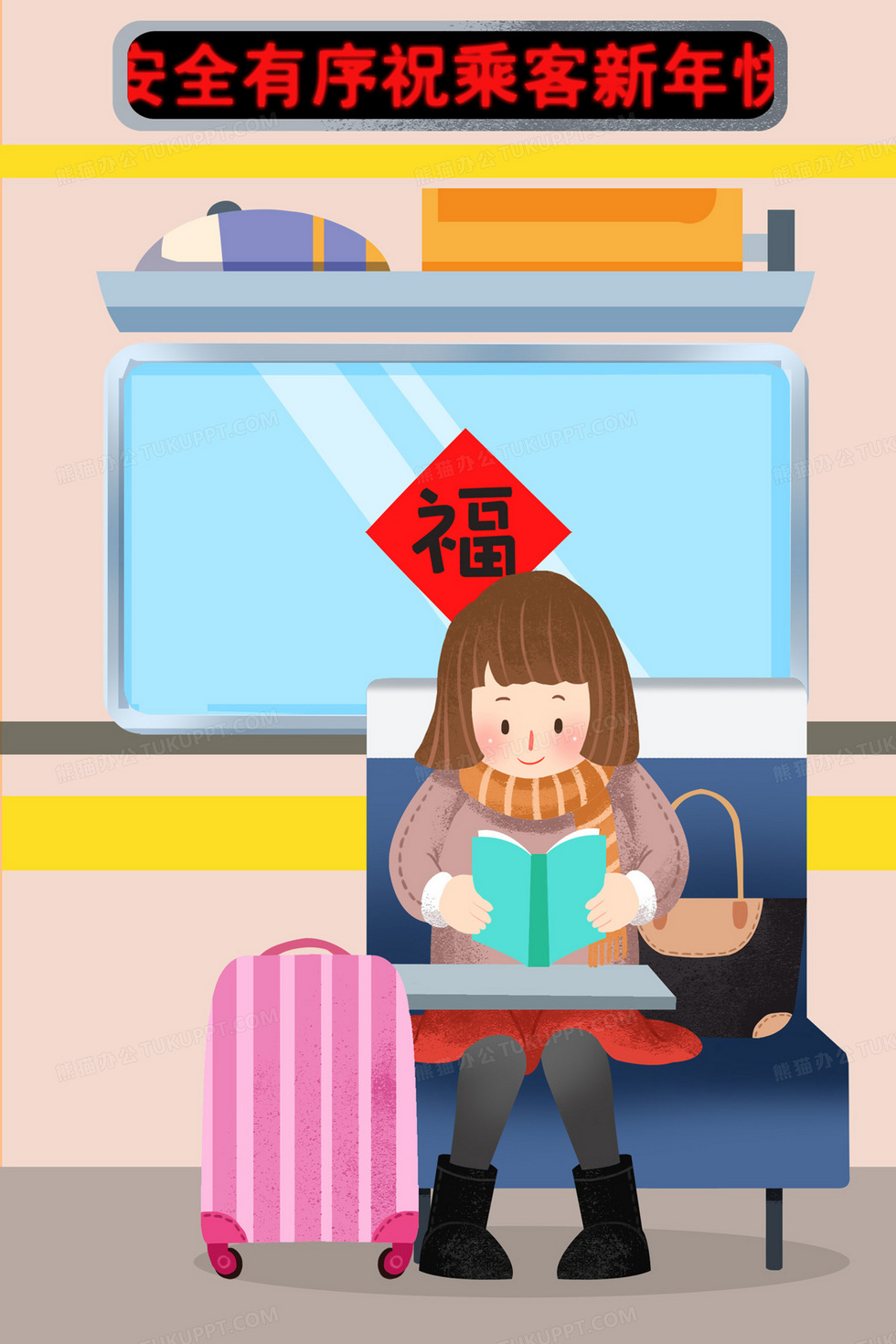 本作品内容为春节女孩坐高铁回家插画, 格式为 psd, 大小19 MB, 请使用软件PhotoShop(CC)打开, 源文件无水印, 欢迎使用熊猫办公。 如认为平台内容涉嫌侵权,可通过邮件:tousu@tukuppt.com提出书面通知,我们将及时处理。