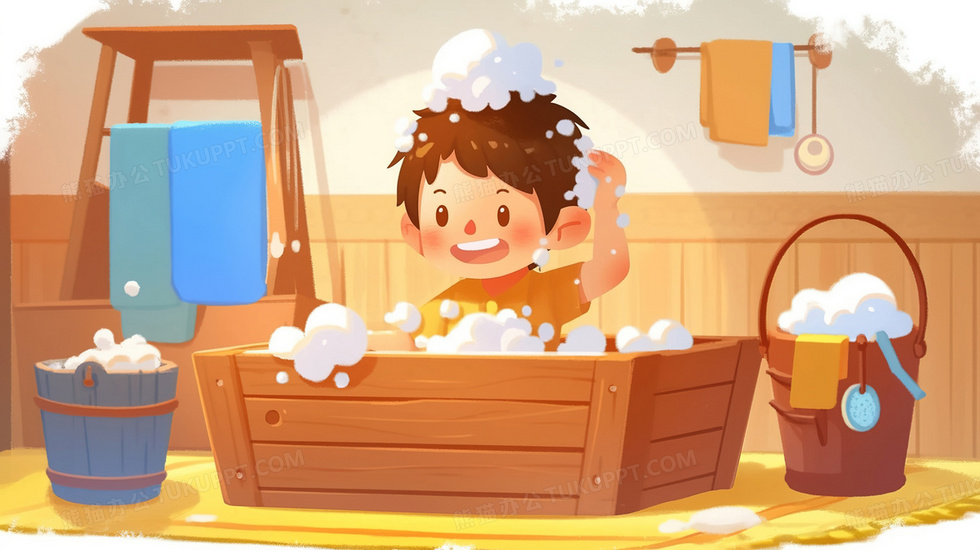 本作品内容为澡堂木盆洗澡洗头的小男孩插画, 格式为 jpg, 大小2 MB, 图片尺寸为2912 x 1632, 源文件无水印, 欢迎使用熊猫办公。 如认为平台内容涉嫌侵权,可通过邮件:tousu@tukuppt.com提出书面通知,我们将及时处理。