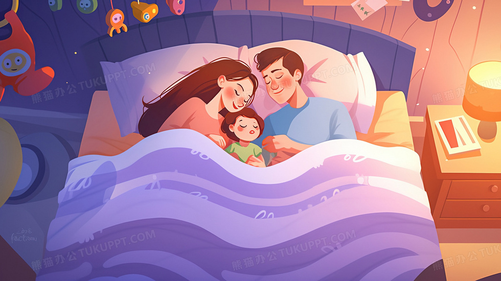 本作品内容为床铺安心睡眠的一家人插画, 格式为 jpg, 大小2 MB, 图片尺寸为2912 x 1632, 源文件无水印, 欢迎使用熊猫办公。 如认为平台内容涉嫌侵权,可通过邮件:tousu@tukuppt.com提出书面通知,我们将及时处理。